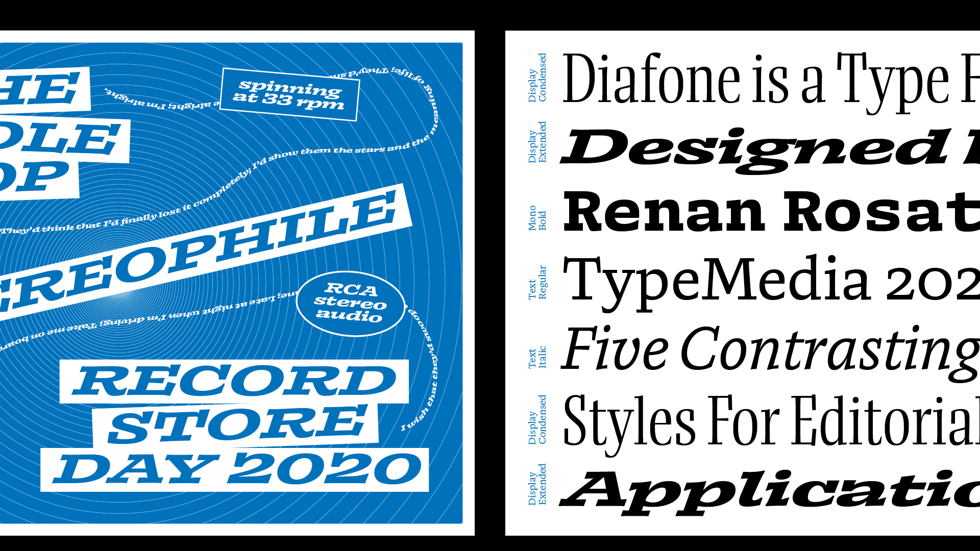 Diafone is a project that investigates the variety of voices available within one publication and proposes a different way to organize and structure a typeface for magazines. Each of the 5 styles are designed with a specific size and function in mind: the text styles are for body copy; the mono can be used for captions as well as a bold for the text; and the display styles can shine in larger sizes. This makes it possible to set an entire publication using Diafone. The goal of the type family is not to achieve a uniform voice, but rather to establish a hierarchy, in which each style fulfills a different role and offers a unique personality. Through this variety of voices, Diafone offers a creative alternative for traditional font pairing for magazines and all kinds of editorial applications. Diafone was awarded Merit of the Gerard Unger Scholarship 2020.